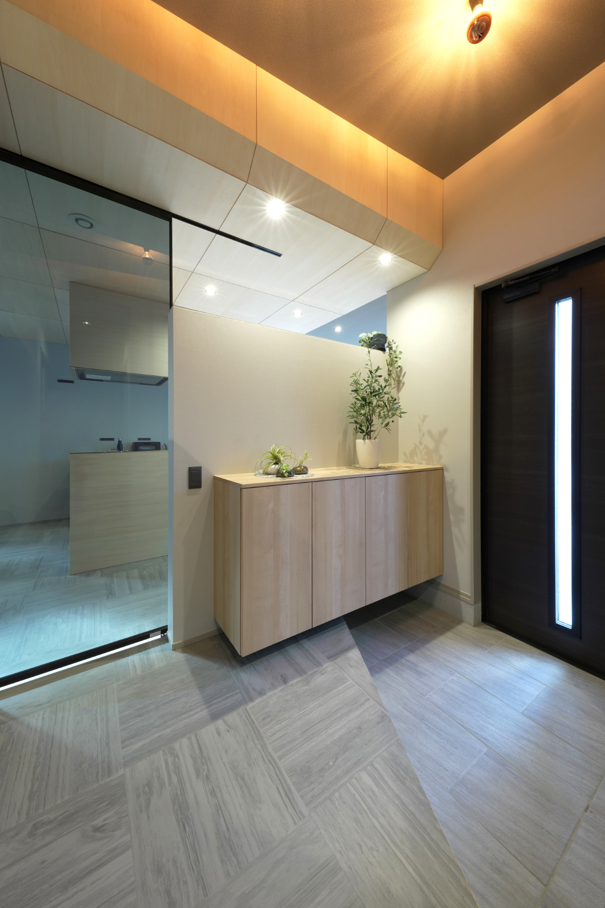 3つの異なるタイル外壁が織りなすシックでモダンな外観は、どこか”こなれ感”があって目を引く存在です。