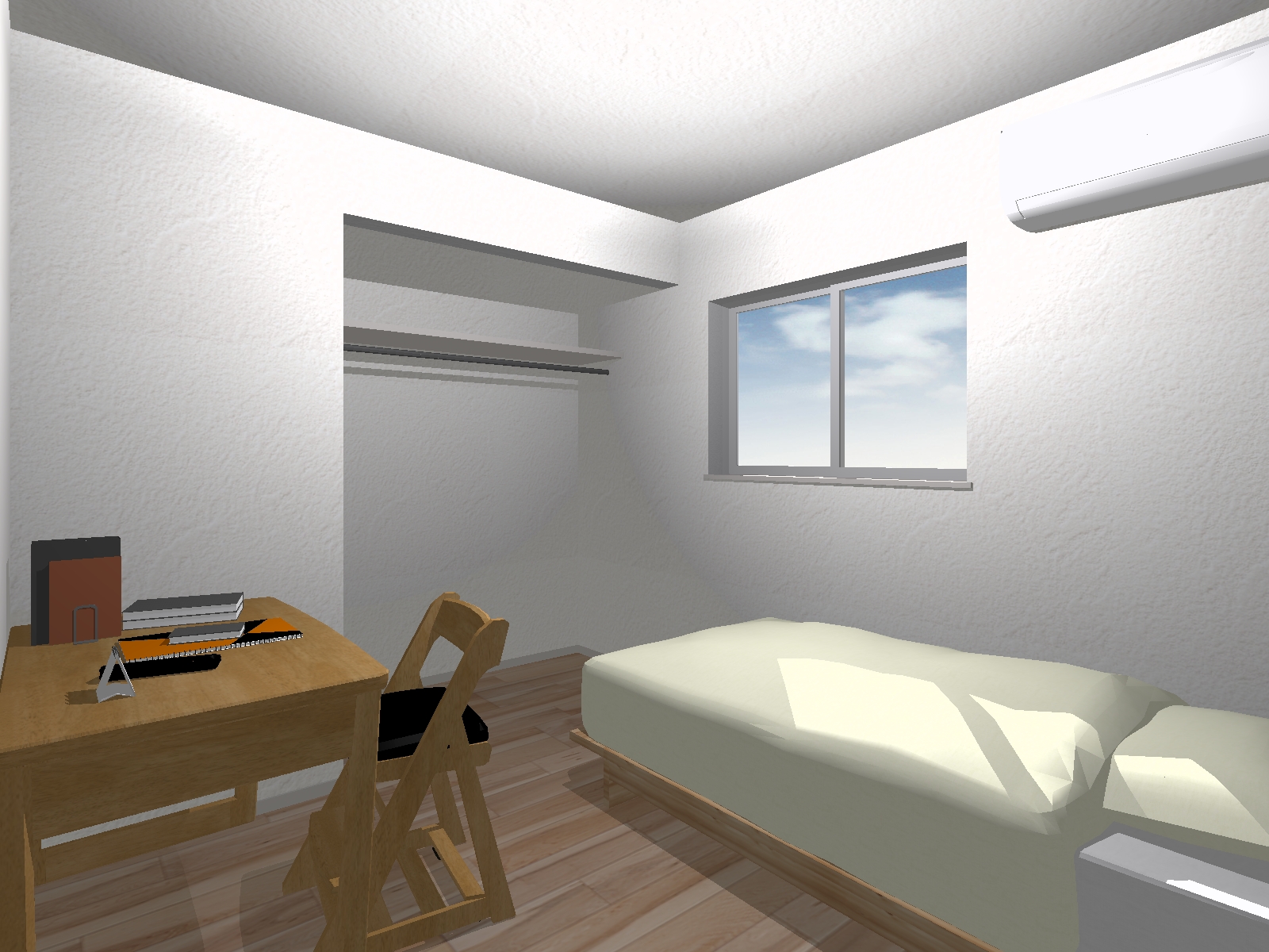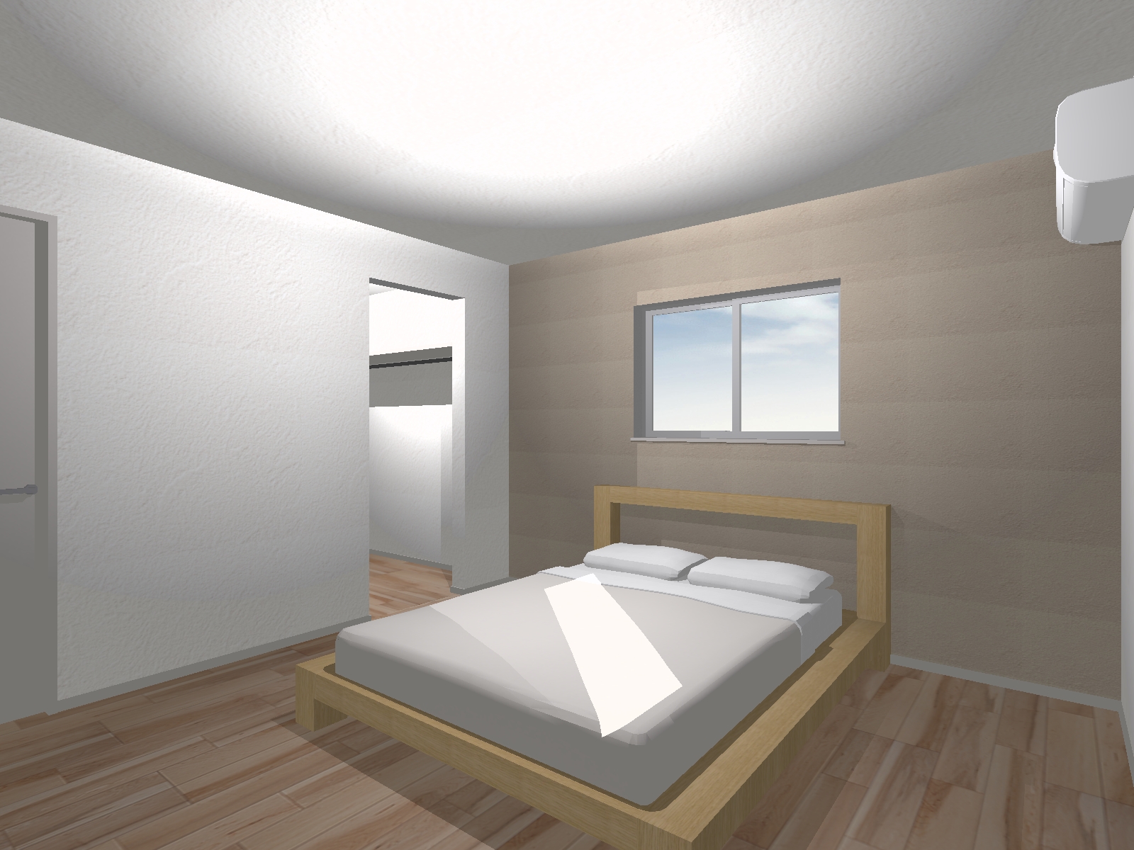 照明とカーテン、エアコン2台設置済み、駐車場3~4台分の外構工事済みでのお渡しです。