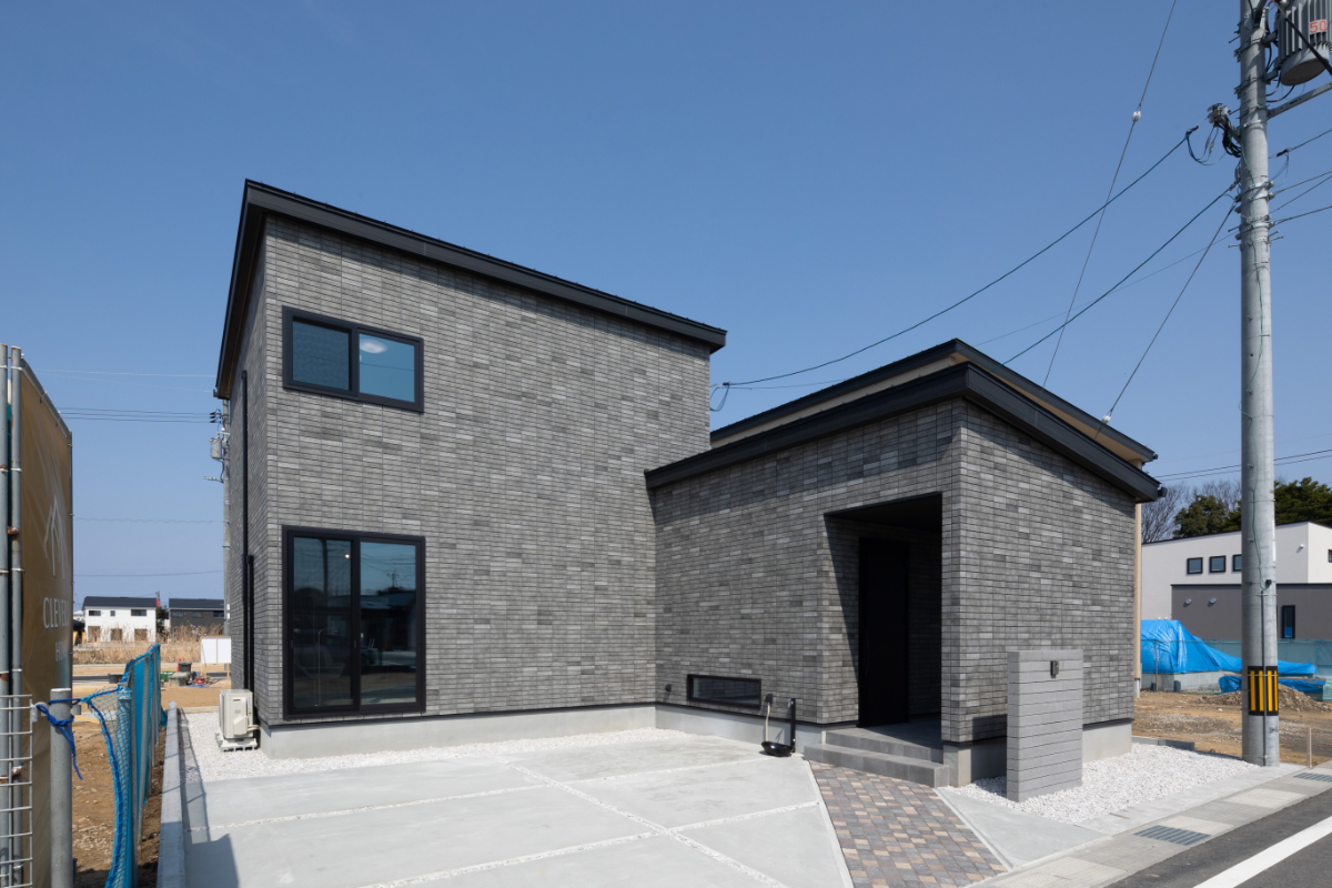 グレー×ブラックの外壁タイルがスタイリッシュな外観。