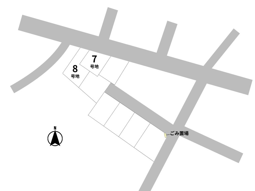 8号地:北側公道幅員7.5~8.4m 接道長さ5.78m