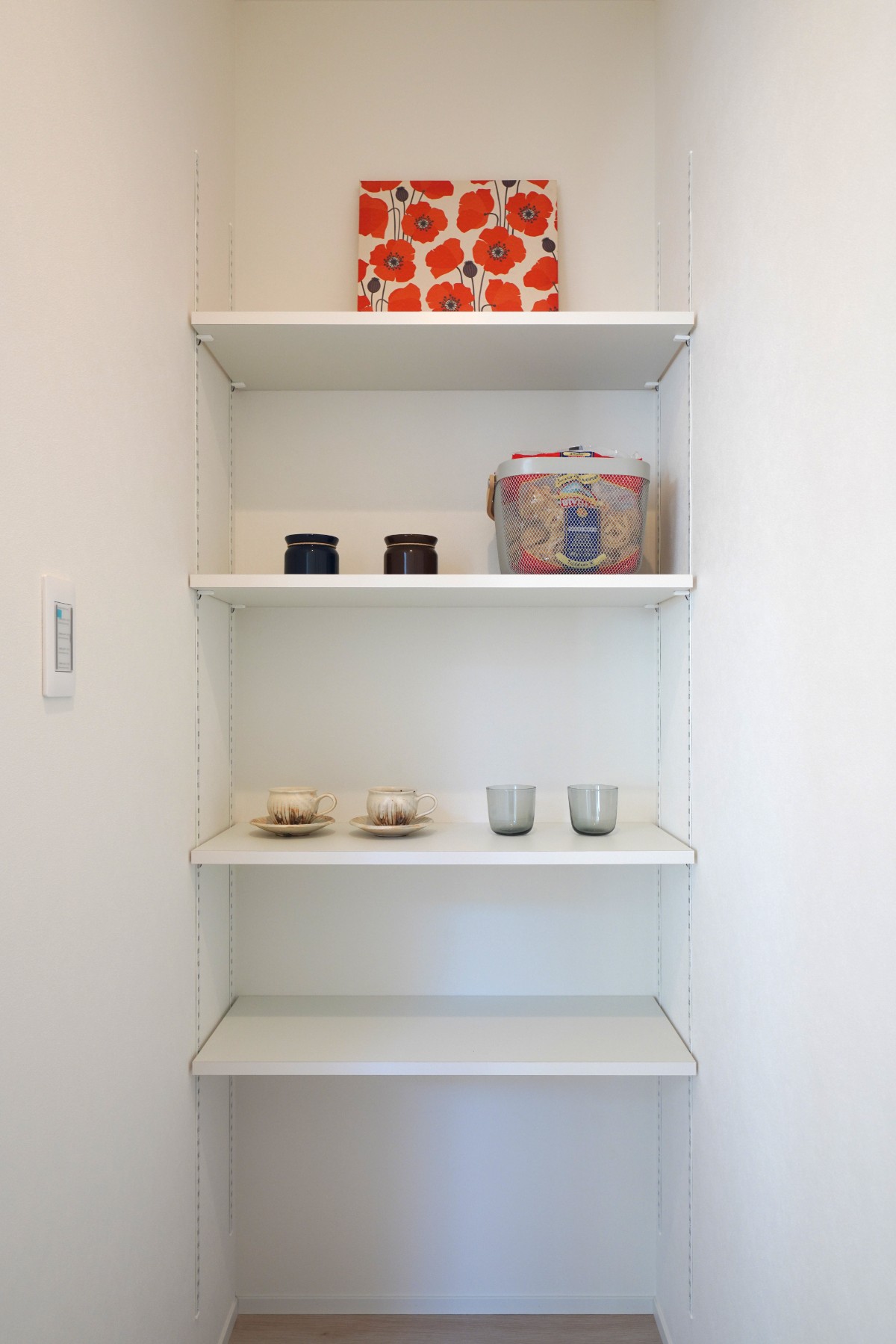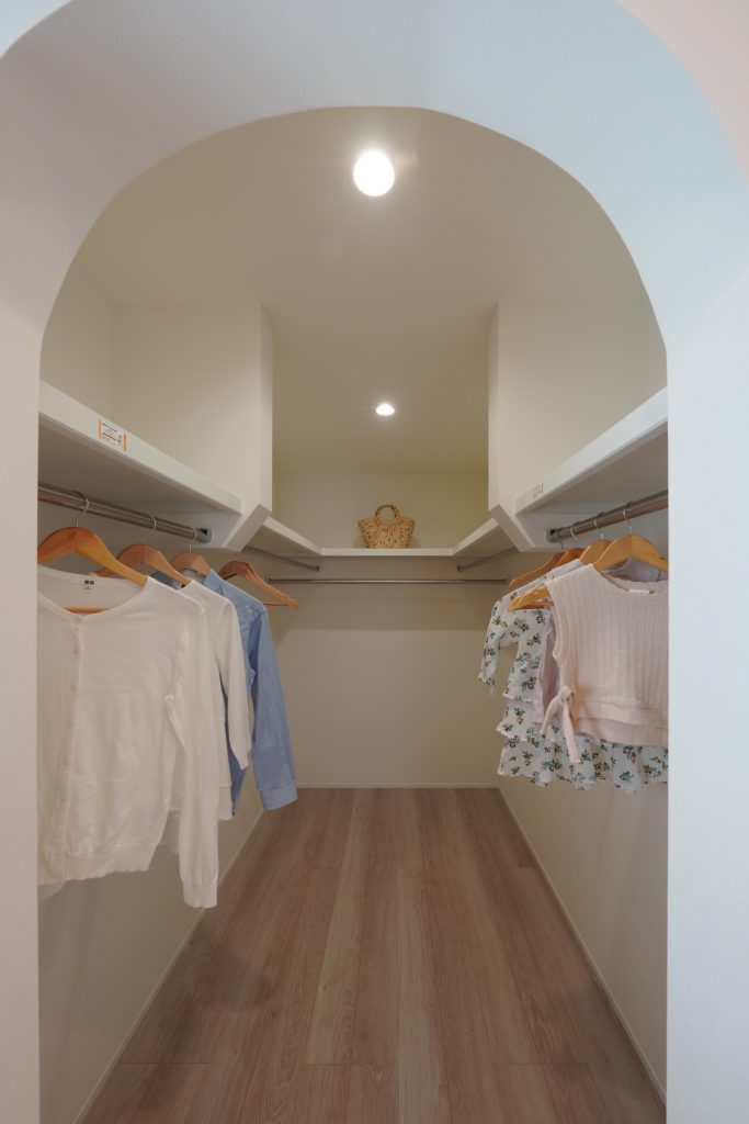 ■アーチ壁がアクセントの「機能的なパントリー&クローゼット」